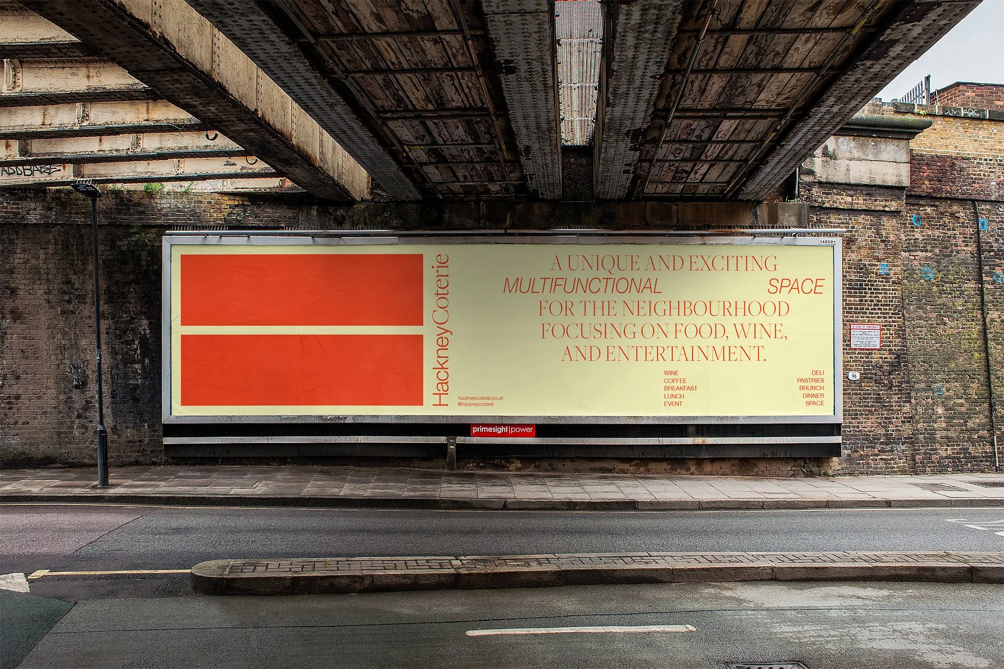 A split-level venue embedded in the vibrant heart of East London; a welcoming hub for people with a shared passion and interest in good food, good wine, and good times. The deliberately over-exaggerated, tight kerning on the logotype visually represents the sense of community and connection that comes from people coming together in celebration and enjoyment.
