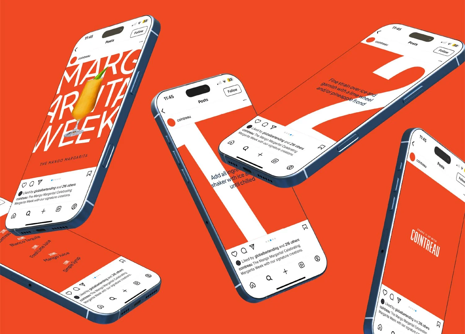 As part of an extensive on-trade project, Cointreau needed a versatile activation toolkit for global markets. The cohesive, dynamic visual strategy and the activation name ‘Shake It Up with Cointreau’ create communications that appear tossed inside a shaker, symbolising the margarita’s heritage and the campaign’s energetic goal: to remind consumers of the very first margarita.