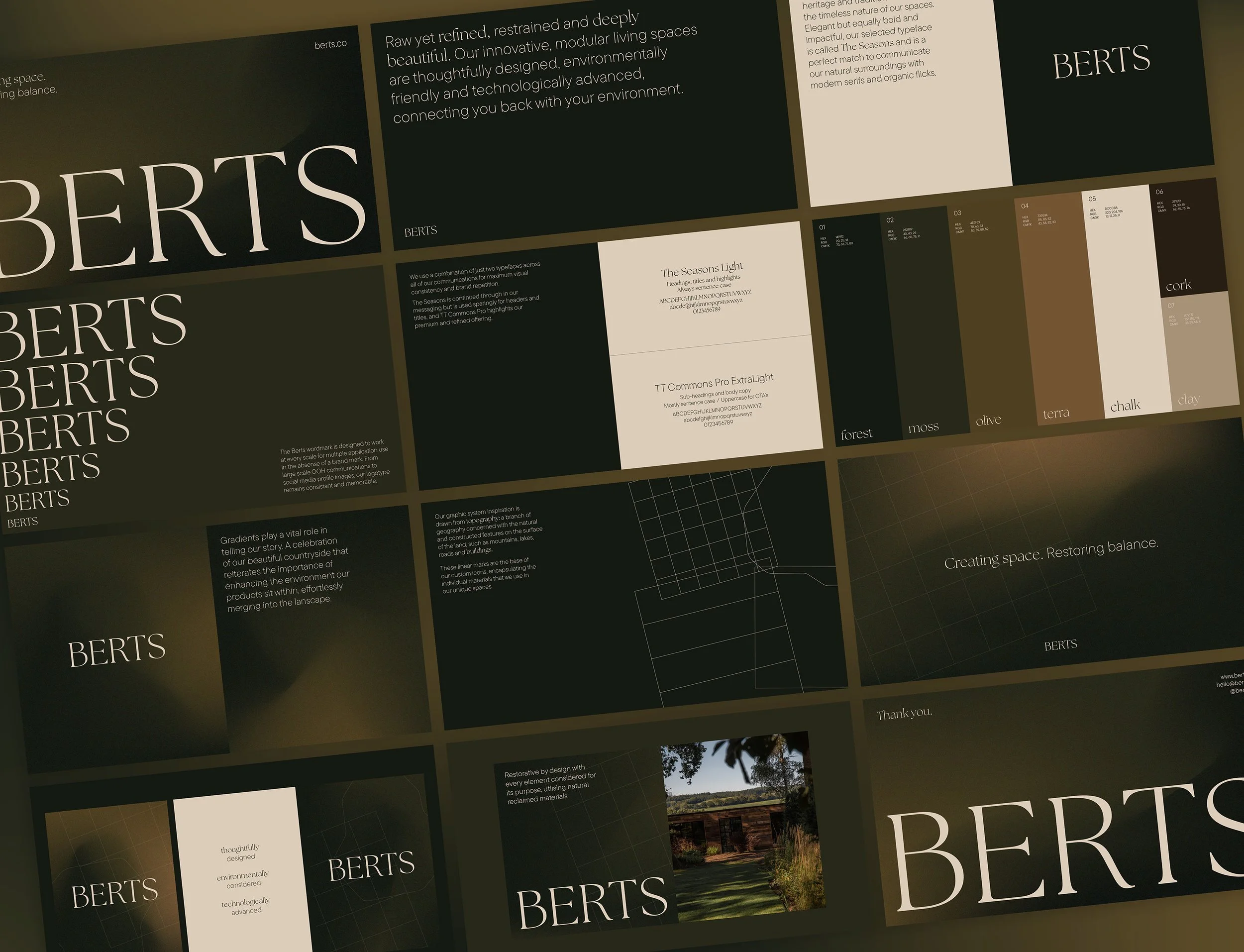 An established brand with a decade of experience sought a fresh identity to reflect their high-quality, eco-friendly modular living spaces. Designed to restore and blend with nature, the new visual style draws from the landscape, using a subtle aesthetic inspired by organic shapes and topographical maps, highlighting the bond between home and terrain.